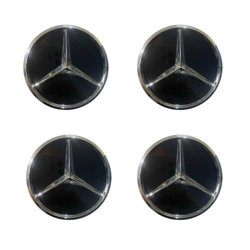 4X Calota Centro De Roda Mercedes Preto Brilhante 74Mm