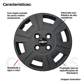4x Calota Chevrolet Aro 13 Preto 057cb Bem vindo a multi calotas Dados do produto Referência 057cb Calota para linha Chevrolet Cor: Preto Aro: 13 Emblema: de alumínio Furação: 4x100 Cubo: baixo Aplicação: parafusada Marca: Grid Aplicável nos seguintes carros: Corsa todos Celta todos Classic todos Marca: Não Informado Ean: 7897633154223