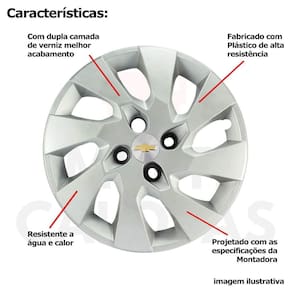 4x Calota Chevrolet Corsa Prisma Onix Aro 14 133cb Calota em Plástico de Alta resistência, Fabricado pela Grid Calotas com os mesmos padrões e exigências da montadora. Com logotipo incluso. SERVE: GM Corsa - todos GM Montana - todos GM Astra - todos GM Monza - todos GM Onix - todos GM Prisma - todos GM Vectra - todos CARACTERÍSTICAS: - Fabricado em Plástico Resistente - Com dupla camada de verniz - Resistente a água e calor - Feito de acordo com os padrões da montadora - Fixação: por Parafusos - Furação: 4x100 - Cubo: Baixo - Cor: Prata - Referência: 133cb - Marca: Grid Calotas ITENS INCLUSOS: - Um 1 Kit com Quatro 4 Calotas com Emblema Incluso. DIMENSÕES Unitário - Diâmetro: 39 cm - Altura: 4 cm INSTALAÇÃO A instalação é feita de forma simples, podendo ser feita por você mesmo. Não necessita retirar todos os parafusos. de 30 dias para defeitos de fabricação. SOBRE O ENVIO Marca: Não Informado