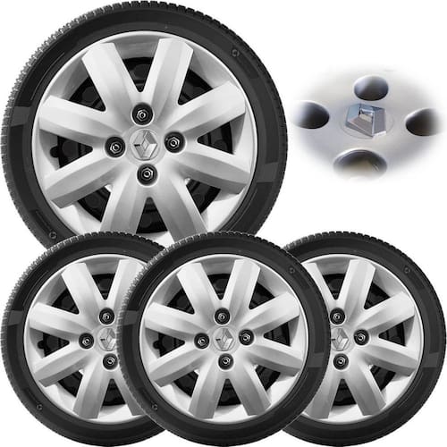 4x calota clio logan sandero 07 a 13 aro 14 prata com logo Calota em plástico de alta resistência, Fabricado pela top mix com os mesmos padrões e exigências da montadora. Com logotipo incluso.