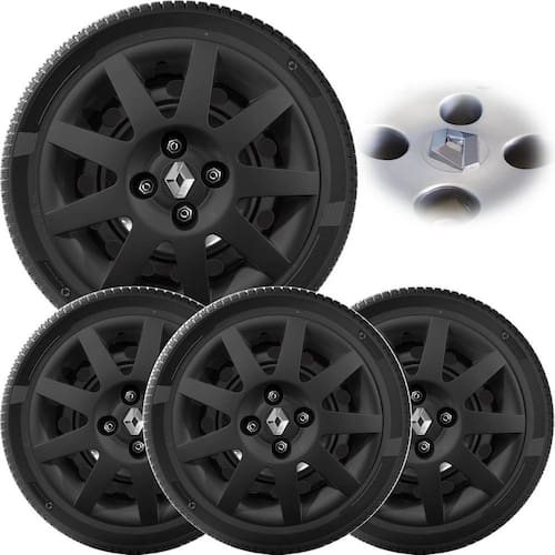 4x calota clio logan sandero 2009 a 2013 aro 14 preto fosco Calota em plástico de alta resistência, Fabricado pela top mix com os mesmos padrões e exigências da montadora. Com logotipo incluso.