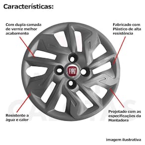Calota em Plástico de Alta resistência, Fabricado pela Grid Calotas com os mesmos padrões e exigências da montadora. Com logotipo incluso.