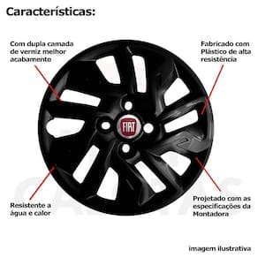 CARACTERÍSTICAS: - Fabricado em Plástico Resistente - Com dupla camada de verniz - Resistente a água e calor - Feito de acordo com os padrões da montadora - Fixação: por Parafusos - Furação: 4x100 - Cubo: Baixo - Cor: Preto Fosco - Referência: 292CB - Marca: Grid Calotas