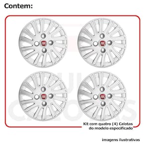 4x calota fiat mille palio siena uno aro 14 emblema 093cb Calota em plástico de alta resistência, Fabricado pela grid calotas com os mesmos padrões e exigências da montadora. Com logotipo incluso. Jogo de calotas para a linha fiat para roda de ferro aro 14. Não serve nos fiat strada - fiat palio adventure - fiat nova fiorino Características: - fabricado em plástico resistente - com dupla camada de verniz - resistente a água e calor - feito de acordo com os padrões da montadora - fixação: por parafusos - furação: 4x100 - cubo: baixo - cor: prata - referência: 093cb - marca: grid calotas Itens inclusos: - um 1 kit com quatro 4 calotas com emblema incluso. Dimensões unitário - diâmetro: 39 cm - altura: 4 cm Instalação A instalação é feita de forma simples, podendo ser feita por você mesmo. Não necessita retirar todos os parafusos. de 30 dias para defeitos de fabricação.