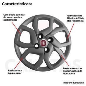 4x Calota Fiat Mobi Argo Idea Aro 14 Grafite Emblema 291cb Calota em Plástico de Alta resistência, Fabricado pela Grid Calotas com os mesmos padrões e exigências da montadora. Com logotipo incluso. Jogo de Calotas para o Fiat Mobi - Fiat Argo - Fiat Idea Todos os Anos Aro 14. NÃO SERVE nos Fiat Strada - Fiat Palio Adventure - Fiat Nova Fiorino CARACTERÍSTICAS: - Fabricado em Plástico Resistente - Com dupla camada de verniz - Resistente a água e calor - Feito de acordo com os padrões da montadora - Fixação: por Parafusos - Furação: 4x100 - Cubo: Baixo - Cor: Grafite - Referência: 291CB - Marca: Grid Calotas ITENS INCLUSOS: - Um 1 Kit com quatro 4 calotas para Roda Aro 14 com Emblema Incluso. DIMENSÕES Unitário - Diâmetro: 39 cm - Altura: 4 cm INSTALAÇÃO A instalação é feita de forma simples, podendo ser feita por você mesmo. Não necessita retirar todos os parafusos. de 30 dias para defeitos de fabricação. SOBRE O ENVIO Envio podendo ser feito até o próximo dia útil após confirmação de pagamento. em até 3 , em caso de boleto POLÍTICA DE TROCA Sempre estamos interessados em sua satisfação. Caso não receba o produto exatamente como no anúncio, com algum defeito ou no transporte, Você poderá trocar e devolver a qualquer momento, sem pressa, sem prazo e principalmente sem custos desde que o produto esteja sem uso e na mesma condição da data da compra . No caso de devolução por compra de tamanho errado, desistência ou mudança de intenção, Neste caso o cliente deve arcar com o custo da devolução da mercadoria e nós arcamos com o custo de reenvio Da mercadoria nova. Eu clicando em comprar 1 unidade equivale 4 calotas Resposta: sim O emblema é resistente a água e calor Resposta: O emblema é de alta qualidade já aplicado na calota com cola especial O emblema tem relevo Resposta: Todos emblemas tem um pouco de relevo A calota pode ser aplicada em outro aro Resposta: Recomendamos a instalação somente no aro correto da calota Tem Resposta: Sim, total para defeitos de fabricação Serve em outro carro além dos descritos no anuncio Resposta: Recomendamos a instalação somente dos carros descritos acima A calota é resistente Resposta: Sim a calota é bem resistente e com uma ótima camada de verniz O valor anunciado são quantas peças Resposta: O valor anunciado é referente a 4 calotas Essa calota é para roda de ferro A foto é real do produto Resposta: sim a foto é real do produto apenas com fundo branco Precisa tirar os 4 parafusos da roda e subir o carro Resposta: Não, só retira 3 parafusos e não precisa subir o carro no macaco Marca: Não Informado