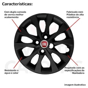 4x calota fiat mobi argo palio aro 14 preto emblema 293cb Calota em plástico de alta resistência, Fabricado pela grid calotas com os mesmos padrões e exigências da montadora. Com logotipo incluso. Jogo de calotas para a linha fiat para rodas de ferro aro 14. Serve: Fiat mobi - todos Fiat argo - todos Fiat palio - 2012 a 2017 Características: - fabricado em plástico resistente - com dupla camada de verniz - resistente a água e calor - feito de acordo com os padrões da montadora - fixação: por parafusos - furação: 4x100 - cubo: baixo - cor: preto - referência: 293cb - marca: grid calotas Itens inclusos: - um 1 kit com quatro 4 calotas com emblema incluso. Dimensões unitário - diâmetro: 39 cm - altura: 4 cm Instalação A instalação é feita de forma simples, podendo ser feita por você mesmo. Não necessita retirar todos os parafusos. de 30 dias para defeitos de fabricação. Sobre o envio Envio podendo ser feito até o próximo dia útil após confirmação de pagamento. em até 3 , em caso de boleto Política de troca Sempre estamos interessados em sua satisfação. Caso não receba o produto exatamente como no anúncio, com algum defeito ou no transporte, Você poderá trocar e devolver a qualquer momento, sem pressa, sem prazo e principalmente sem custos desde que o produto esteja sem uso e na mesma condição da data da compra . No caso de devolução por compra de tamanho errado, desistência ou mudança de intenção, Neste caso o cliente deve arcar com o custo da devolução da mercadoria e nós arcamos com o custo de reenvio Da mercadoria nova. Marca: Não Informado