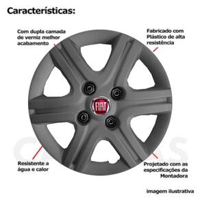 4x Calota Fiat Palio Mille Fire Aro 13 Grafite 080cb Calota em Plástico de Alta resistência, Fabricado pela Grid Calotas com os mesmos padrões e exigências da montadora. Com logotipo incluso.