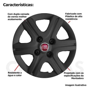 CARACTERÍSTICAS: - Fabricado em Plástico Resistente - Com dupla camada de verniz - Resistente a água e calor - Feito de acordo com os padrões da montadora - Fixação: por Parafusos - Furação: 4x100 - Cubo: Baixo - Cor: Preto - Referência: 080cb - Marca: Grid Calotas