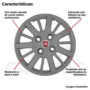 4x calota fiat palio novo uno siena aro 14 grafite 073cb Calota em plástico de alta resistência, Fabricado pela grid calotas com os mesmos padrões e exigências da montadora. Com logotipo incluso.