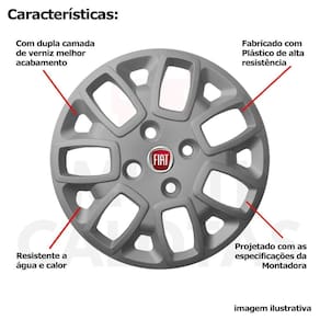 4x calota fiat palio novo uno siena aro 14 grafite 157cb Calota em plástico de alta resistência, Fabricado pela grid calotas com os mesmos padrões e exigências da montadora. Com logotipo incluso. Serve: Fiat palio - todos Fiat uno - todos Fiat siena - todos Fiat fiorino - exceto nova fiorino Fiat 147 - todos Fiat elba - todos Fiat oggi - todos Fiat panorama - todos Fiat prêmio - todos Características: - fabricado em plástico resistente - com dupla camada de verniz - resistente a água e calor - feito de acordo com os padrões da montadora - fixação: por parafusos - furação: 4x100 - cubo: baixo - cor: cinza grafite - referência: 157cb - marca: grid calotas Itens inclusos: - um 1 kit com quatro 4 calotas com emblema incluso. Dimensões unitário - diâmetro: 39 cm - altura: 4 cm Instalação A instalação é feita de forma simples, podendo ser feita por você mesmo. Não necessita retirar todos os parafusos. de 30 dias para defeitos de fabricação. Sobre o envio Envio podendo ser feito até o próximo dia útil após confirmação de pagamento. em até 3 , em caso de boleto Política de troca Sempre estamos interessados em sua satisfação. Caso não receba o produto exatamente como no anúncio, com algum defeito ou no transporte, Você poderá trocar e devolver a qualquer momento, sem pressa, sem prazo e principalmente sem custos desde que o produto esteja sem uso e na mesma condição da data da compra . No caso de devolução por compra de tamanho errado, desistência ou mudança de intenção, Neste caso o cliente deve arcar com o custo da devolução da mercadoria e nós arcamos com o custo de reenvio Da mercadoria nova. Marca: Não Informado