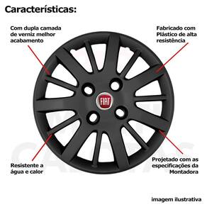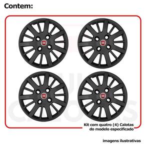 4x calota fiat palio novo uno siena aro 14 preto 073cb Calota em plástico de alta resistência, Fabricado pela grid calotas com os mesmos padrões e exigências da montadora. Com logotipo incluso.
