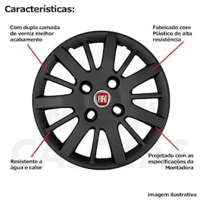 4x calota fiat palio novo uno siena aro 14 preto 073cb Calota em plástico de alta resistência, Fabricado pela grid calotas com os mesmos padrões e exigências da montadora. Com logotipo incluso. Serve: Fiat palio - todos Fiat uno - todos Fiat siena - todos Fiat fiorino - exceto nova fiorino Fiat 147 - todos Fiat elba - todos Fiat oggi - todos Fiat panorama - todos Fiat prêmio - todos Características: - fabricado em plástico resistente - com dupla camada de verniz - resistente a água e calor - feito de acordo com os padrões da montadora - fixação: por parafusos - furação: 4x100 - cubo: baixo - cor: preto - referência: 073cb - marca: grid calotas Itens inclusos: - um 1 kit com quatro 4 calotas com emblema incluso. Dimensões unitário - diâmetro: 39 cm - altura: 4 cm Instalação A instalação é feita de forma simples, podendo ser feita por você mesmo. Não necessita retirar todos os parafusos. de 30 dias para defeitos de fabricação. Marca: Não Informado