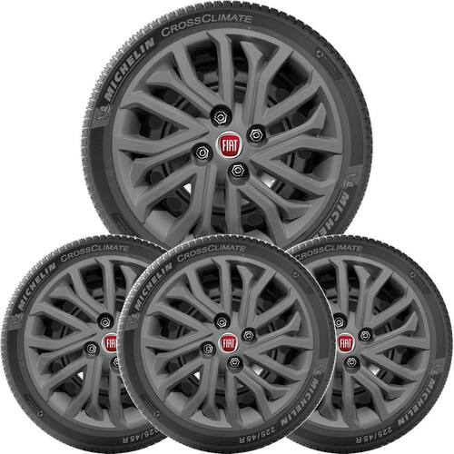 4x calota fiat punto palio grand siena aro 15 grafite 296cp Calota em plástico de alta resistência, Fabricado pela grid calotas com os mesmos padrões e exigências da montadora. Com logotipo incluso. Características: - fabricado em plástico resistente - com dupla camada de verniz - resistente a água e calor - feito de acordo com os padrões da montadora - fixação: por parafusos - furação: 4x100 - cubo: padrão - cor: cinza grafite - referência: 296cp - marca: grid calotas Itens inclusos: - um 1 kit com quatro 4 calotas com emblema incluso. Dimensões unitário - diâmetro: 41 cm - altura: 4 cm de 30 dias para defeitos de fabricação. Marca: Não Informado