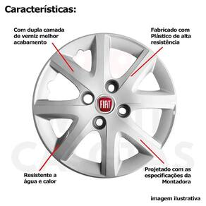 Calota em Plástico de Alta resistência, Fabricado pela Grid Calotas com os mesmos padrões e exigências da montadora. Com logotipo incluso. SERVE: Fiat Palio - todos Fiat Uno - todos Fiat Siena - todos Fiat Fiorino - exceto nova fiorino Fiat 147 - todos Fiat Elba - todos Fiat Oggi - todos Fiat Panorama - todos Fiat Prêmio - todos CARACTERÍSTICAS: - Fabricado em Plástico Resistente - Com dupla camada de verniz - Resistente a água e calor - Feito de acordo com os padrões da montadora - Fixação: por Parafusos - Furação: 4x100 - Cubo: Baixo - Cor: Prata - Referência: 160cb - Marca: Grid Calotas ITENS INCLUSOS: - Um 1 Kit com Quatro 4 Calotas com Emblema Incluso. DIMENSÕES Unitário - Diâmetro: 39 cm - Altura: 4 cm INSTALAÇÃO A instalação é feita de forma simples, podendo ser feita por você mesmo. Não necessita retirar todos os parafusos. de 30 dias para defeitos de fabricação. Marca: Não Informado