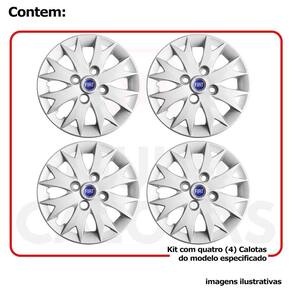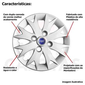 Calota em Plástico de Alta resistência, Fabricado pela Grid Calotas com os mesmos padrões e exigências da montadora. Com logotipo incluso. SERVE Fiat Uno - até 2013 Fiat Elba - Todos Fiat Premio - Todos Fiat Fiorino - até 2013 Fiat Palio - Todos Fiat Siena - até 2016 NÃO SERVE Fiat Strada - cubo de roda incompatível Fiat Palio Adventure - cubo de roda incompatível Fiat Nova Fiorino - cubo de roda incompatível Fiat Grand Siena - aro de roda maior CARACTERÍSTICAS: - Fabricado em Plástico Resistente - Com dupla camada de verniz - Resistente a água e calor - Feito de acordo com os padrões da montadora - Fixação: por Parafusos - Furação: 4x100 - Cubo: Baixo - Cor: Prata - Referência: 158CB - Marca: Grid Calotas ITENS INCLUSOS: DIMENSÕES Unitário - Diâmetro: 37 cm - Altura: 4 cm INSTALAÇÃO A instalação é feita de forma simples, podendo ser feita por você mesmo. Não necessita retirar todos os parafusos. de 30 dias para defeitos de fabricação. Marca: Não Informado Ean: 7895576620515