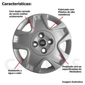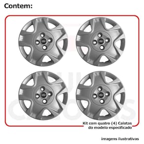 CARACTERÍSTICAS: - Fabricado em Plástico Resistente - Com dupla camada de verniz - Resistente a água e calor - Feito de acordo com os padrões da montadora - Fixação: por Parafusos - Furação: 4x108 - Cubo: Baixo - Cor: Cinza Grafite - Referência: 025cb - Marca: Grid Calotas