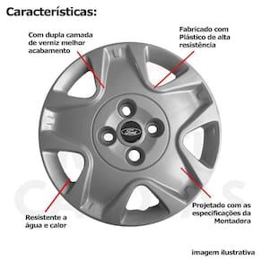 4x Calota Ford Fiesta Aro 14 Grafite com Emblema 025cb Calota em Plástico de Alta resistência, Fabricado pela Grid Calotas com os mesmos padrões e exigências da montadora. Com logotipo incluso. SERVE: Ka - todos Fiesta - todos Escort - todos Courier - todos Focus - todos Mondeo - todos Verona - todos Versalhes - todos CARACTERÍSTICAS: - Fabricado em Plástico Resistente - Com dupla camada de verniz - Resistente a água e calor - Feito de acordo com os padrões da montadora - Fixação: por Parafusos - Furação: 4x108 - Cubo: Baixo - Cor: Cinza Grafite - Referência: 025cb - Marca: Grid Calotas ITENS INCLUSOS: - Um 1 Kit com Quatro 4 Calotas com Emblema Incluso. DIMENSÕES Unitário - Diâmetro: 39 cm - Altura: 4 cm INSTALAÇÃO A instalação é feita de forma simples, podendo ser feita por você mesmo. Não necessita retirar todos os parafusos. de 30 dias para defeitos de fabricação. Marca: Não Informado