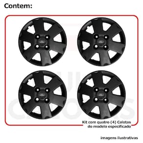 4x Calota Ford Ka Fiesta Aro 13 Preto com Emblema 033cb Calota em Plástico de Alta resistência, Fabricado pela Grid Calotas com os mesmos padrões e exigências da montadora. Com logotipo incluso. SERVE: Ford Ka - todos Ford Fiesta - todos Ford Escort - todos Ford Courier - todos CARACTERÍSTICAS: - Fabricado em Plástico Resistente - Com dupla camada de verniz - Resistente a água e calor - Feito de acordo com os padrões da montadora - Fixação: por Parafusos - Furação: 4x108 - Cubo: Baixo - Cor: Preto - Referência: 033CB - Marca: Grid Calotas ITENS INCLUSOS: - Um 1 Kit com Quatro 4 Calotas com Emblema Incluso. DIMENSÕES Unitário - Diâmetro: 37 cm - Altura: 4 cm INSTALAÇÃO A instalação é feita de forma simples, podendo ser feita por você mesmo. Não necessita retirar todos os parafusos. de 30 dias para defeitos de fabricação. Marca: Não Informado