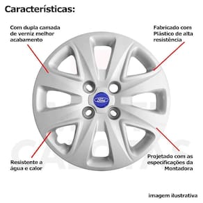 4x Calota Ford Ka Hatch Sedan 15 a 18 Aro 14 com Logo 340cb Calota em Plástico de Alta resistência, Fabricado pela Grid Calotas com os mesmos padrões e exigências da montadora. Com logotipo incluso. SERVE: Ford Ka - 2015 a 2018 Ford Ka+ - 2015 a 2018 CARACTERÍSTICAS: - Fabricado em Plástico Resistente - Com dupla camada de verniz - Resistente a água e calor - Feito de acordo com os padrões da montadora - Fixação: por Parafusos - Furação: 4x108 - Cubo: Baixo - Cor: Prata - Referência: 340CB - Marca: Grid Calotas ITENS INCLUSOS: - Um 1 Kit com Quatro 4 Calotas com Emblema Incluso. DIMENSÕES Unitário - Diâmetro: 39 cm - Altura: 4 cm INSTALAÇÃO A instalação é feita de forma simples, podendo ser feita por você mesmo. Não necessita retirar todos os parafusos. de 30 dias para defeitos de fabricação. SOBRE O ENVIO Marca: Não Informado