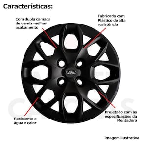 4x Calota Ford Ka Hatch Sedan Aro 14 Preto Brilhante Calota em Plástico de Alta resistência, Fabricado pela Grid Calotas com os mesmos padrões e exigências da montadora. Com logotipo incluso. SERVE: Ka - a partir de 2015 Ka+ - a partir de 2015 CARACTERÍSTICAS: - Fabricado em Plástico Resistente - Com dupla camada de verniz - Resistente a água e calor - Feito de acordo com os padrões da montadora - Fixação: por Parafusos - Furação: 4x108 - Cubo: Baixo - Cor: Preto Brilhante - Referência: 342cb - Marca: Grid Calotas ITENS INCLUSOS: - Um 1 Kit com Quatro 4 Calotas com Emblema Incluso. DIMENSÕES Unitário - Diâmetro: 39 cm - Altura: 4 cm INSTALAÇÃO A instalação é feita de forma simples, podendo ser feita por você mesmo. Não necessita retirar todos os parafusos. de 30 dias para defeitos de fabricação. SOBRE O ENVIO Marca: Não Informado Ean: 7890179377576