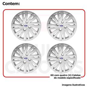 CARACTERÍSTICAS: - Fabricado em Plástico Resistente - Com dupla camada de verniz - Resistente a água e calor - Feito de acordo com os padrões da montadora - Fixação: por Parafusos - Furação: 4x108 - Cubo: Baixo - Cor: Prata - Referência: 344CB - Marca: Grid Calotas