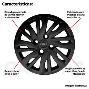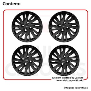 4x Calota Ford KA NOVO 2019 a 2022 Aro 14 Preto Emblem 344cb Calota em Plástico de Alta resistência, Fabricado pela Grid Calotas com os mesmos padrões e exigências da montadora. Com logotipo incluso. SERVE: Ford Novo Ka - 2019 a 2021 Ford Novo Ka+ - 2019 a 2021 CARACTERÍSTICAS: - Fabricado em Plástico Resistente - Com dupla camada de verniz - Resistente a água e calor - Feito de acordo com os padrões da montadora - Fixação: por Parafusos - Furação: 4x108 - Cubo: Baixo - Cor: Preto - Referência: 344CB - Marca: Grid Calotas ITENS INCLUSOS: - Um 1 Kit com Quatro 4 Calotas com Emblema Incluso. DIMENSÕES Unitário - Diâmetro: 39 cm - Altura: 4 cm INSTALAÇÃO A instalação é feita de forma simples, podendo ser feita por você mesmo. Não necessita retirar todos os parafusos. de 30 dias para defeitos de fabricação. Marca: Não Informado