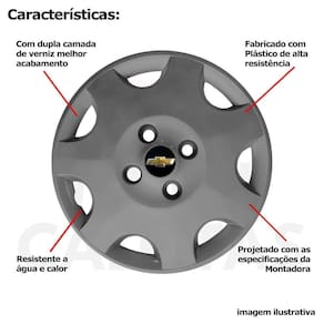 4x calota gm corsa celta classic aro 13 grafite emblem 118cb Calota em plástico de alta resistência, Fabricado pela grid calotas com os mesmos padrões e exigências da montadora. Com logotipo incluso. Jogo de calotas para a linha chevrolet para roda de ferro aro 13. Características: - fabricado em plástico resistente - com dupla camada de verniz - resistente a água e calor - feito de acordo com os padrões da montadora - fixação: por parafusos - furação: 4x100 - cubo: baixo - cor: cinza grafite - referência: 118cb - marca: grid calotas Itens inclusos: - um 1 kit com quatro 4 calotas com emblema incluso. Dimensões unitário - diâmetro: 37 cm - altura: 4 cm Instalação A instalação é feita de forma simples, podendo ser feita por você mesmo. Não necessita retirar todos os parafusos. de 30 dias para defeitos de fabricação. Sobre o envio
