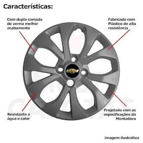 4x Calota Gm Onix Prisma Aro 14 Grafite com Emblema 374cb Calota em Plástico de Alta resistência, Fabricado pela Grid Calotas com os mesmos padrões e exigências da montadora. Com logotipo incluso. SERVE: GM Onix - 2017/20 exceto joy GM Prisma - 2017/20 exceto joy CARACTERÍSTICAS: - Fabricado em Plástico Resistente - Com dupla camada de verniz - Resistente a água e calor - Feito de acordo com os padrões da montadora - Fixação: por Parafusos - Furação: 4x100 - Cubo: Baixo - Cor: Cinza Grafite - Referência: 374CB - Marca: Grid Calotas ITENS INCLUSOS: - Um 1 Kit com Quatro 4 Calotas com Emblema Incluso. DIMENSÕES Unitário - Diâmetro: 39 cm - Altura: 4 cm INSTALAÇÃO A instalação é feita de forma simples, podendo ser feita por você mesmo. Não necessita retirar todos os parafusos. de 30 dias para defeitos de fabricação. SOBRE O ENVIO Marca: Não Informado