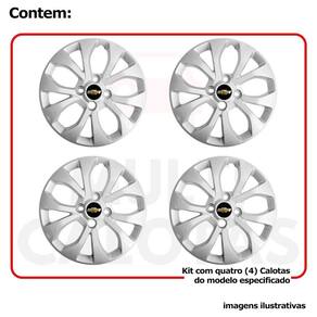 4x Calota Gm Onix Prisma Aro14 Ano 2017/20 com emblema 374cb Calota em Plástico de Alta resistência, Fabricado pela Grid Calotas com os mesmos padrões e exigências da montadora. Com logotipo incluso. SERVE: GM Onix - 2017/20 exceto joy GM Prisma - 2017/20 exceto joy CARACTERÍSTICAS: - Fabricado em Plástico Resistente - Com dupla camada de verniz - Resistente a água e calor - Feito de acordo com os padrões da montadora - Fixação: por Parafusos - Furação: 4x100 - Cubo: Baixo - Cor: Prata - Referência: 374CB - Marca: Grid Calotas ITENS INCLUSOS: - Um 1 Kit com Quatro 4 Calotas com Emblema Incluso. DIMENSÕES Unitário - Diâmetro: 39 cm - Altura: 4 cm INSTALAÇÃO A instalação é feita de forma simples, podendo ser feita por você mesmo. Não necessita retirar todos os parafusos. de 30 dias para defeitos de fabricação. SOBRE O ENVIO Marca: Não Informado