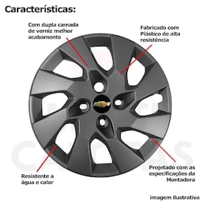 4x Calota Gm Onix Prisma Corsa Aro 15 Grafite com Emb 195cp Calota em Plástico de Alta resistência, Fabricado pela Grid Calotas com os mesmos padrões e exigências da montadora. Com logotipo incluso.