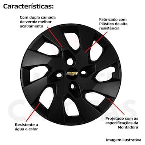 4x Calota Gm Onix Prisma Corsa Aro 15 Preto com Emblem 195cp Calota em Plástico de Alta resistência, Fabricado pela Grid Calotas com os mesmos padrões e exigências da montadora. Com logotipo incluso.