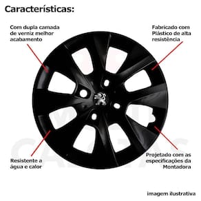 4x Calota Peugeot 206 207 208 Aro 14 Preto com Emblema 410cb Calota em Plástico de Alta resistência, Fabricado pela Grid Calotas com os mesmos padrões e exigências da montadora. Com logotipo incluso. SERVE: Peugeot 206 - todos Peugeot 207 - todos Peugeot 208 - todos CARACTERÍSTICAS: - Fabricado em Plástico Resistente - Com dupla camada de verniz - Resistente a água e calor - Feito de acordo com os padrões da montadora - Fixação: por Parafusos - Furação: 4x108 - Cubo: Baixo - Cor: Preto - Referência: 410CB - Marca: Grid Calotas ITENS INCLUSOS: - Um 1 Kit com Quatro 4 Calotas com Emblema Incluso. DIMENSÕES Unitário - Diâmetro: 39 cm - Altura: 4 cm INSTALAÇÃO A instalação é feita de forma simples, podendo ser feita por você mesmo. Não necessita retirar todos os parafusos. de 30 dias para defeitos de fabricação. SOBRE O ENVIO Marca: Não Informado