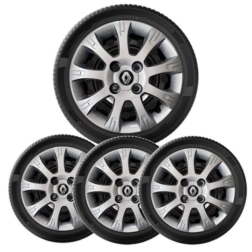 4x Calota Sandero Clio e Logan Aro 14 Prata com Emblema Calota em Plástico de Alta resistência, Fabricado pela Grid Calotas com os mesmos padrões e exigências da montadora. Com logotipo incluso. SERVE: Sandero todos Logan todos Clio todos CARACTERÍSTICAS: - Fabricado em Plástico Resistente - Com dupla camada de verniz - Resistente a água e calor - Fixação: por Parafusos - Furação: 4x100 - Cubo: Baixo - Cor: Prata - Referência: AR6003RN ITENS INCLUSOS: - Um 1 Jogo de Quatro 4 Calotas do Modelo Anunciado com Emblema Incluso DIMENSÕES Unitário - Diâmetro: 39 cm - Altura: 4 cm INSTALAÇÃO A instalação é feita de forma simples, podendo ser feita por você mesmo. Não necessita retirar todos os parafusos. de 30 dias para defeitos de fabricação. Marca: Não Informado Ean: 7890269780279
