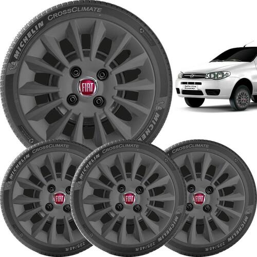 4x Calota Uno Palio Siena Aro 13 Grafite 015cb Calota em Plástico de Alta resistência, Fabricado pela Grid Calotas com os mesmos padrões e exigências da montadora. Com logotipo incluso.