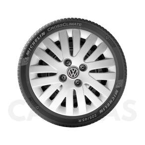 4x Calota Vw Gol Voyage Saveiro Aro 14 009ca Calota em Plástico de Alta resistência, Fabricado pela Grid Calotas com os mesmos padrões e exigências da montadora. Com logotipo incluso. SERVE: VW Gol - até 2012 VW Voyage - até 2012 VW Saveiro - todos VW Polo Classic - todos VW Golf - todos VW Santana - todos VW Parati - todos VW Passat - todos CARACTERÍSTICAS: - Fabricado em Plástico Resistente - Com dupla camada de verniz - Resistente a água e calor - Feito de acordo com os padrões da montadora - Fixação: por Parafusos - Furação: 4x100 - Cubo: Alto - Cor: Prata - Referência: 009ca - Marca: Grid Calotas ITENS INCLUSOS: - Um 1 Kit com Quatro 4 Calotas com Emblema Incluso. DIMENSÕES Unitário - Diâmetro: 39 cm - Altura: 4 cm INSTALAÇÃO A instalação é feita de forma simples, podendo ser feita por você mesmo. Não necessita retirar todos os parafusos. de 30 dias para defeitos de fabricação. SOBRE O ENVIO Marca: Não Informado