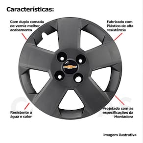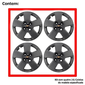 4x Calotas Chevrolet Prisma Onix Corsa Aro 14 Grafite 087cb Calota para toda linha Gm aro 14 Modelo de parafusar na roda Cor Grafite Foto real do produto Valor anunciado é referente a 4 calotas Marca: Não Informado Ean: 7895881466167