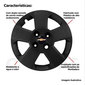 4x Calotas Chevrolet Prisma Onix Corsa Aro 14 Preto 087cb Calota para toda linha Gm aro 14 Modelo de parafusar na roda Cor Preto Foto real do produto Valor anunciado é referente a 4 calotas Marca: Não Informado