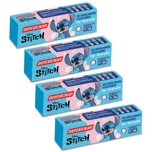 4x gel dental infantil stitch sabor morango 104g colecionável - 3anos+ - dentalclean