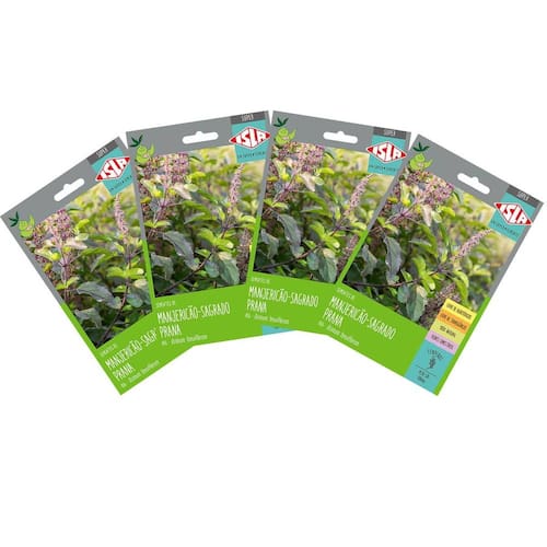 Descrição * Nome Científico: Ocimum tenuiflorum L. * O manjericão é uma das ervas mais fáceis de cultivar na horta. * Podemos plantar em vasos, floreiras e também no solo.* Em meio aos canteiros ou formando um efeito de bordadura ao redor dos cultivos principais. * O manjericão sagrado, é uma planta aromática e com folhas de coloração verde-claras. * Atinge 30-60 cm de altura e suas flores são usadas para fins medicinais.