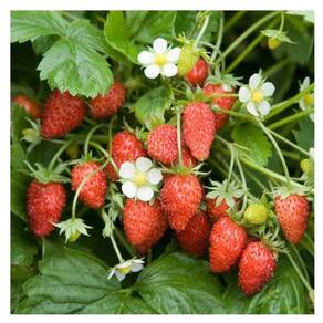 Descrição * Nome cientifico: Fragaria vesca. * Fácil de propagar. * Frutas comestíveis, pequenas e carnudas, com ótimo efeito ornamental. * Excelente para o cultivo na horta doméstica, até mesmo em jardins e vasos.