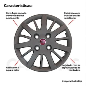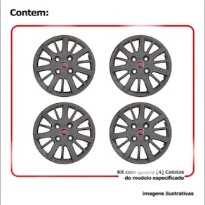 4xcalota Fiat Siena e Palio 2009 a 2010 aro 13 074cb Grafite Calota em Plástico de Alta resistência, Fabricado pela Grid Calotas com os mesmos padrões e exigências da montadora. Com logotipo incluso. SERVE: Fiat Siena 2009 a 2010 Fiat Palio 2009 a 2010 CARACTERÍSTICAS: - Fabricado em Plástico Resistente - Com dupla camada de verniz - Resistente a água e calor - Feito de acordo com os padrões da montadora - Fixação: por Parafusos - Furação: 4x100 - Cubo: Baixo - Cor: Grafite - Referência: 074cb - Marca: Grid Calotas ITENS INCLUSOS: - Um 1 Kit com Quatro 4 Calotas com Emblema Incluso. DIMENSÕES Unitário - Diâmetro: 37 cm - Altura: 4 cm INSTALAÇÃO A instalação é feita de forma simples, podendo ser feita por você mesmo. Não necessita retirar todos os parafusos. de 30 dias para defeitos de fabricação. Marca: Não Informado