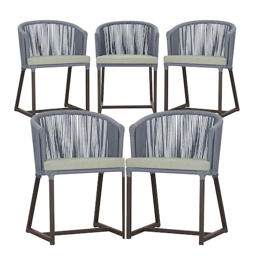 5 Cadeiras de Jantar Área Noronha em Alumínio com Pintura Marrom Corda Náutica E13 Trama - Prata