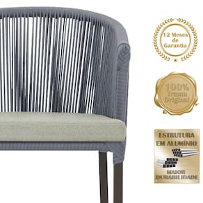 Descubra a Elegância e Durabilidade da Cadeira Noronha. Combinando estilo e resistência, esta cadeira traz o melhor do design contemporâneo em alumínio com micro pintura e acabamento em corda náutica. O estofado impermeável completa o conforto e a funcionalidade, tornando-a ideal para ambientes externos e internos. Qualidade e elegância que transformam qualquer espaço. Adicione um toque de sofisticação e conforto ao seu espaço com a cadeira Noronha.