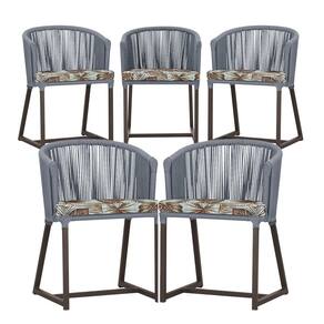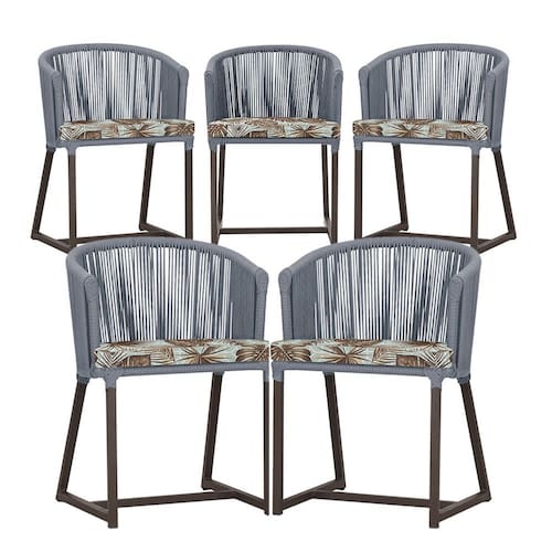 5 Cadeiras de Jantar Área Noronha em Alumínio com Pintura Marrom Corda Náutica E13 Trama - Prata