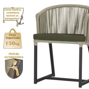 Descubra a Elegância e Durabilidade da Cadeira Noronha. Combinando estilo e resistência, esta cadeira traz o melhor do design contemporâneo em alumínio com micro pintura e acabamento em corda náutica. O estofado impermeável completa o conforto e a funcionalidade, tornando-a ideal para ambientes externos e internos. Qualidade e elegância que transformam qualquer espaço. Adicione um toque de sofisticação e conforto ao seu espaço com a cadeira Noronha.