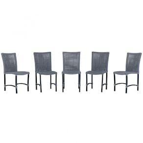 5 Cadeiras De Jantar Cannes De Alumínio Pintura Preta Trama Prata