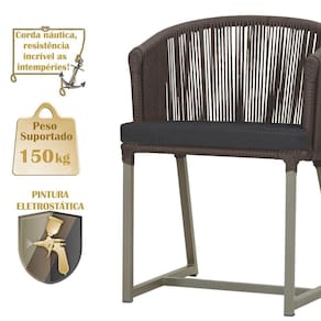 Descubra a Elegancia e Durabilidade da Cadeira Noronha. Combinando estilo e resistencia, esta cadeira traz o melhor do design contemporaneo em aluminio com micro pintura e acabamento em corda nautica. O estofado impermeavel completa o conforto e a funcionalidade, tornando-a ideal para ambientes externos e internos. Qualidade e elegancia que transformam qualquer espaco. Adicione um toque de sofisticacao e conforto ao seu espaco com a cadeira Noronha.