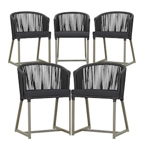 5 Cadeiras De Jantar Noronha Fendi Corda Náutica E11 Trama Preto