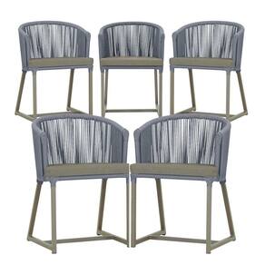 5 Cadeiras De Jantar Noronha Fendi Corda Náutica E8 Trama Prata