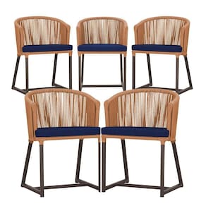 5 Cadeiras De Jantar Noronha Marrom Corda Náutica E10 Trama Terra Cota